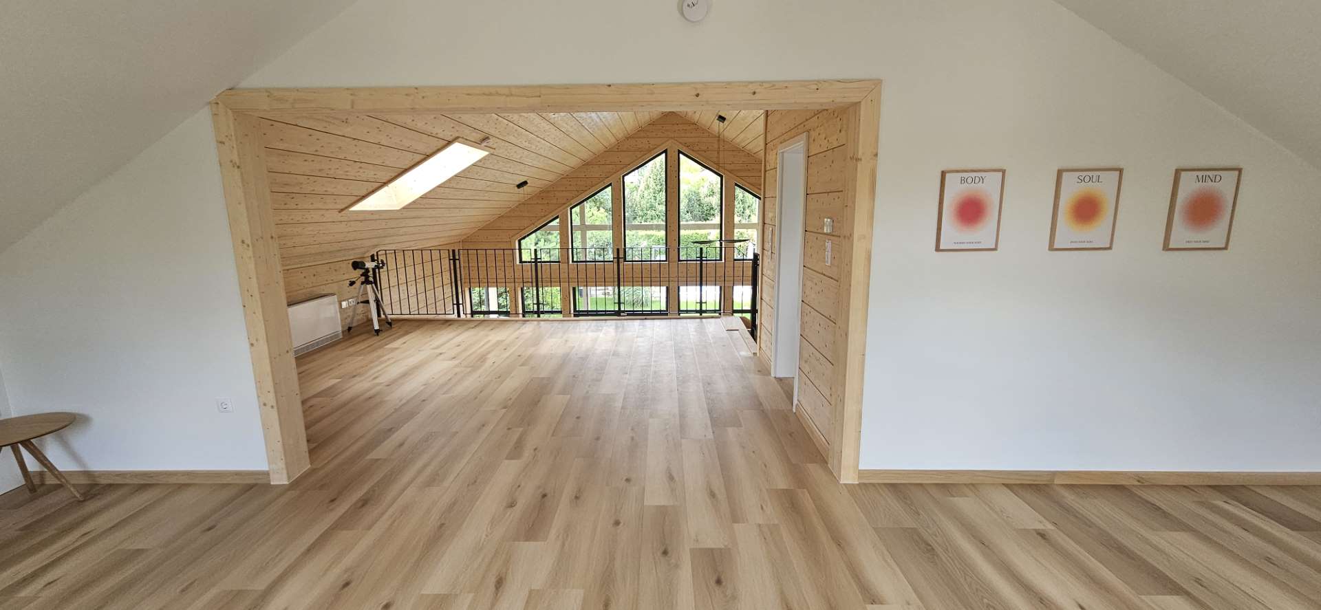 Az emeleten 50 m²-es galéria várja a jógázni és pilatesezni vágyókat.